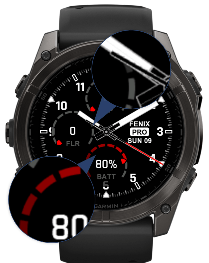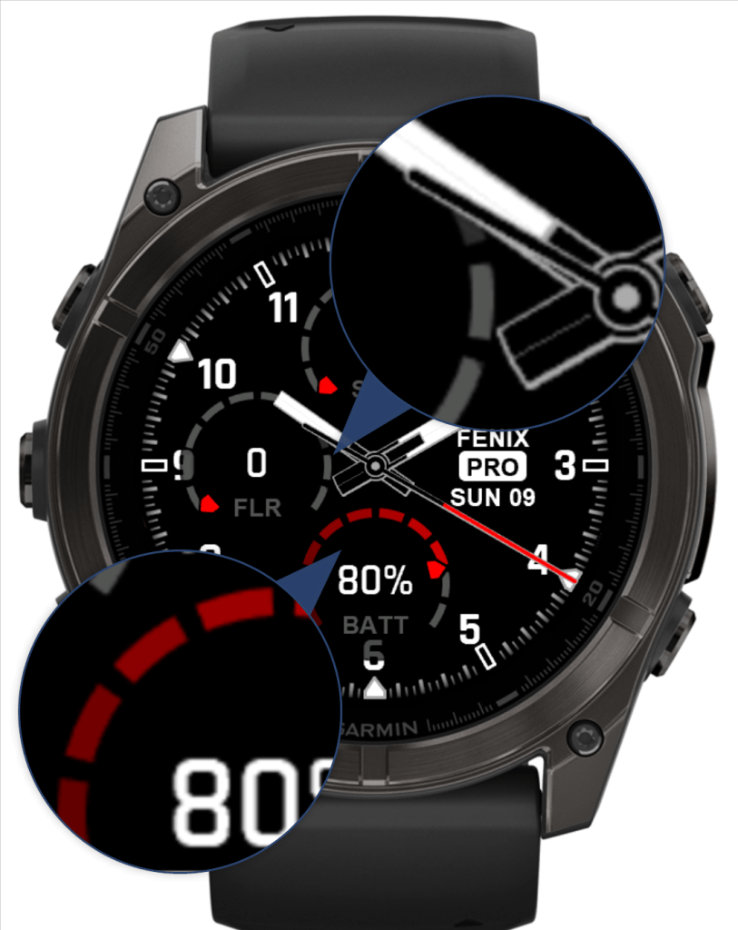 You’ll find classic designs from the MARQ2 series, as well as my own optimized take on the Fenix7 Pro Analog hands for AMOLED screens. Plus, you can now customize the inner hand color and outline color to match your personal style.